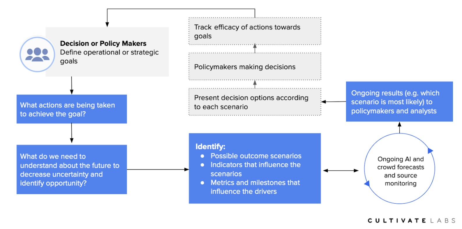 Decomposition and scenario analysis give you the structure to understand unfolding dynamics and what signals drive them. Crowdsourced forecasting gives you a way to measure and assign probabilities to those signals. Bringing these methods together turns fuzzy intuition into clear, actionable foresight.